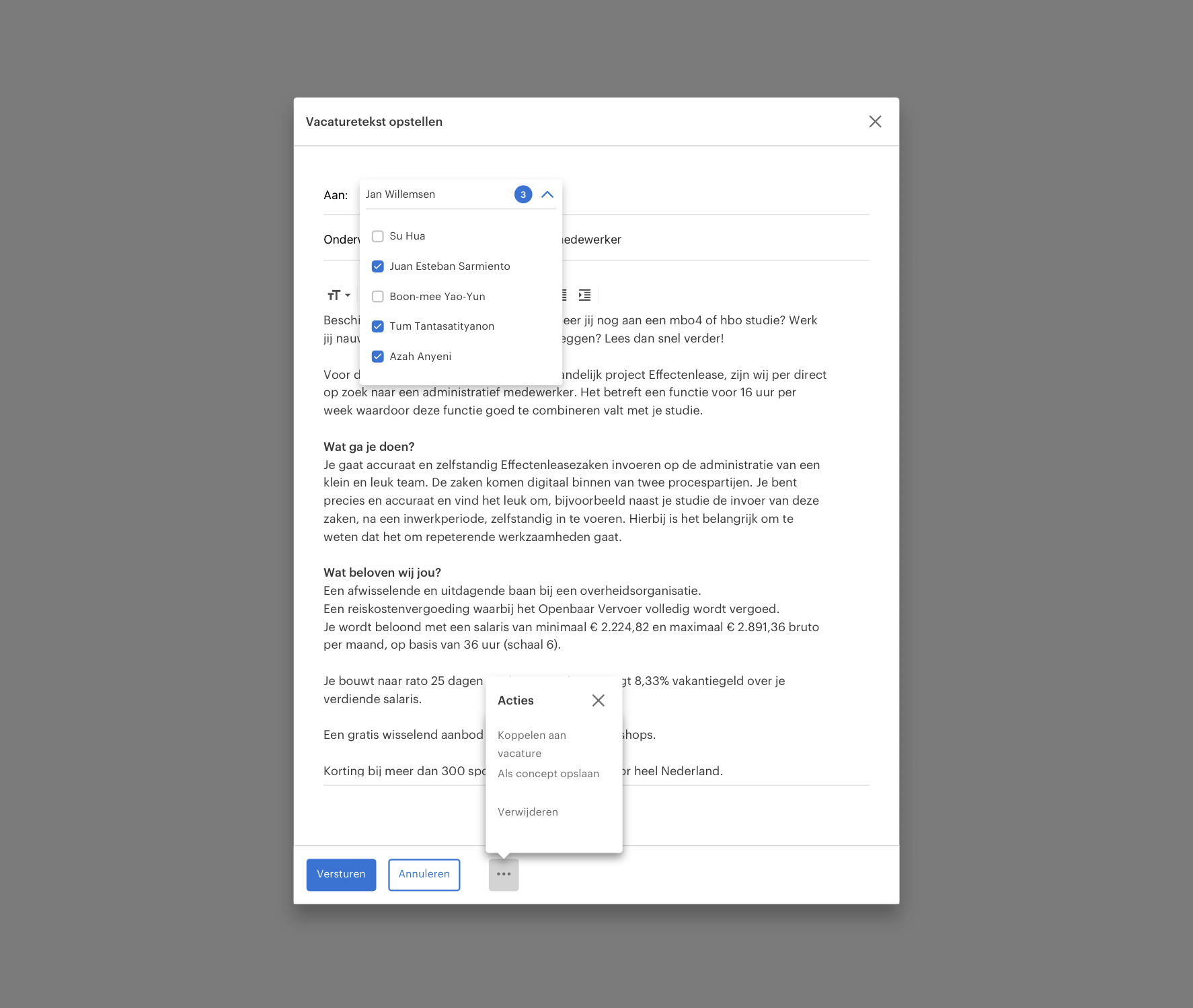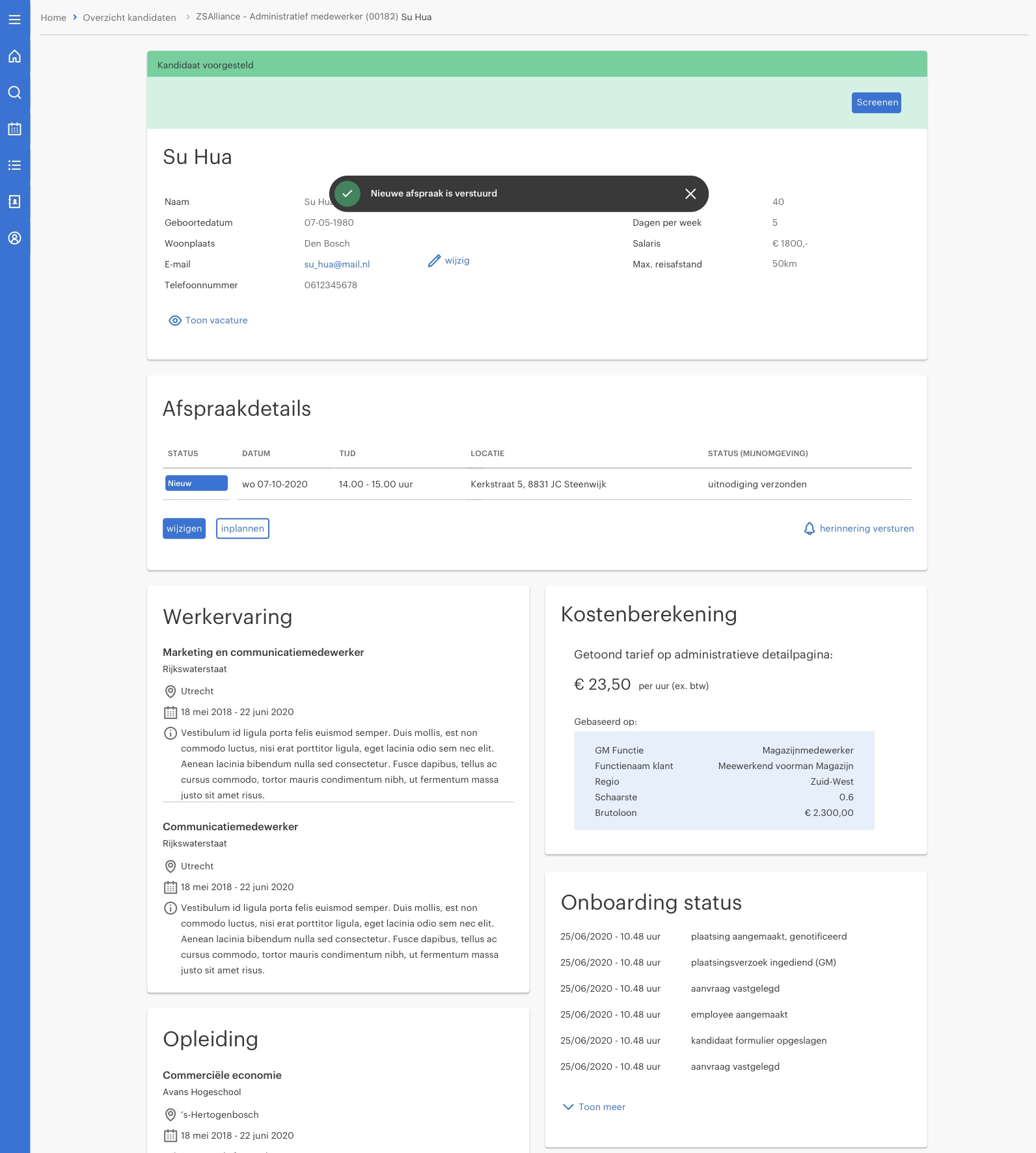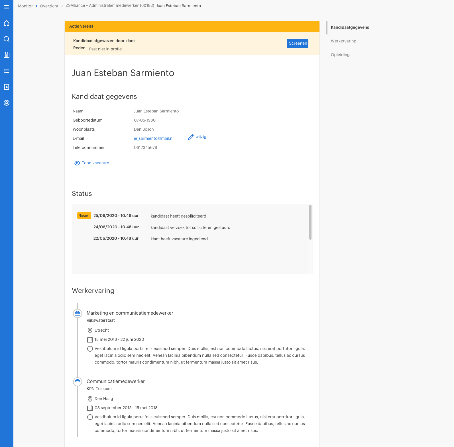 The platform facilitates essential tasks such as screening job descriptions, proposing the right candidates, and providing direct support for client issues. By centralizing and streamlining these processes, the application helps our employees work faster and more efficiently while providing a seamless experience for our clients.