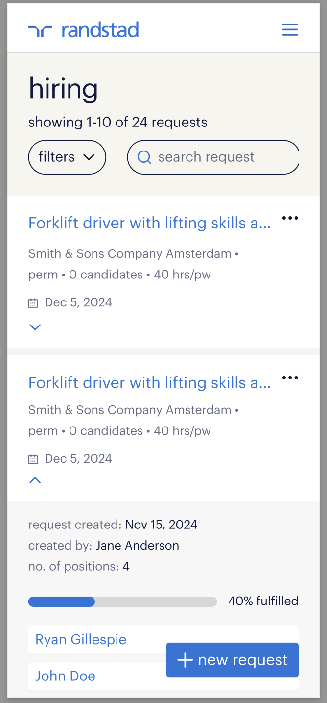 In this phase, my focus was on building the fundamental components of the portal. The core task was to design a new responsive grid system and an optimized navigation. The primary goal was to ensure the portal would provide a smooth and intuitive experience on all devices, especially on mobile, so clients could easily perform crucial tasks like requesting personnel.