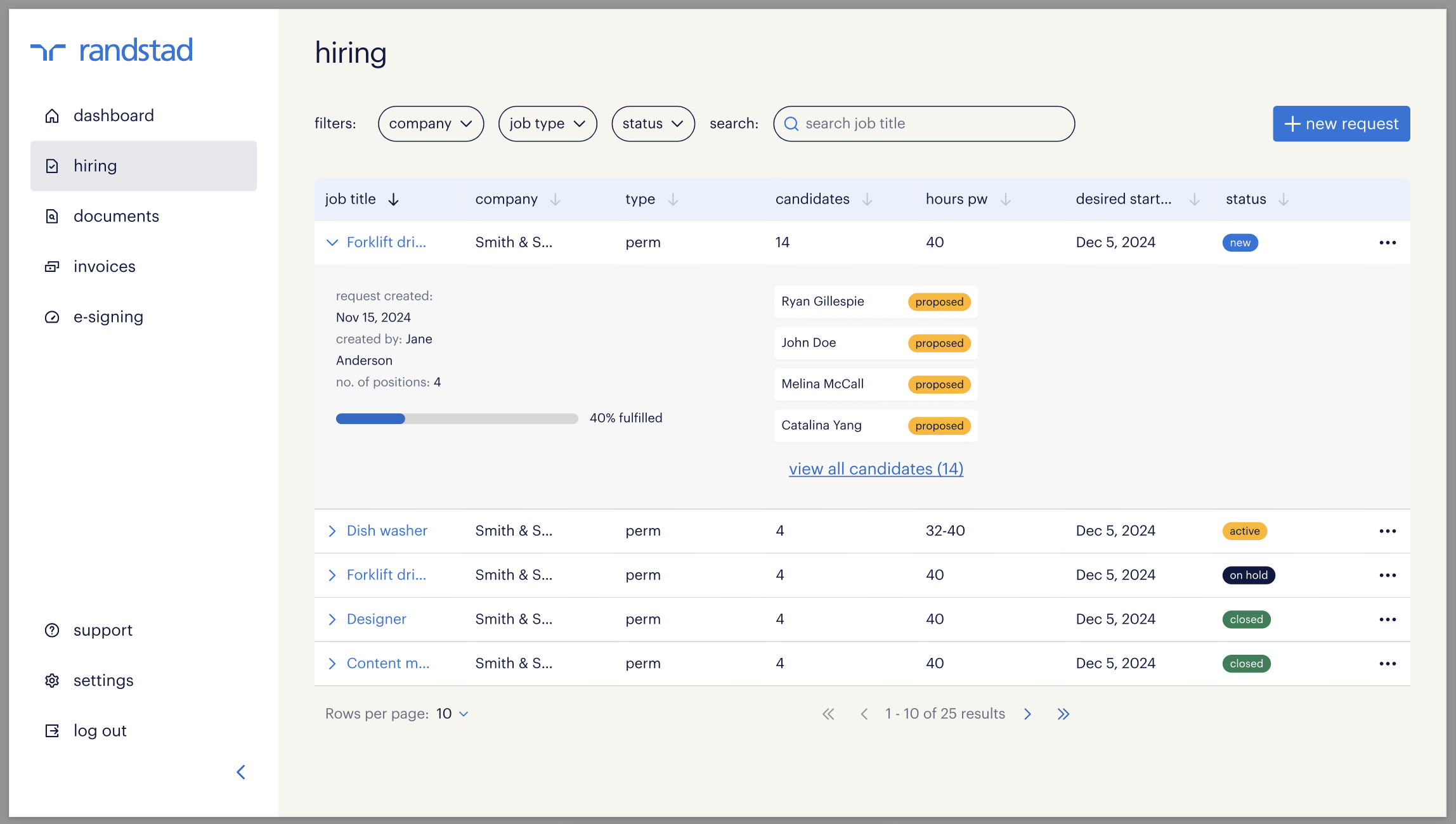 When I joined the project for the rollout of the Global Client Portal, an initial design direction had already been set. My first task was to conduct a thorough assessment of the existing designs to evaluate the project's state. The outcome of this analysis was a strategic recommendation: to make the portal future-proof, it was essential to link it to the central Randstad design system.