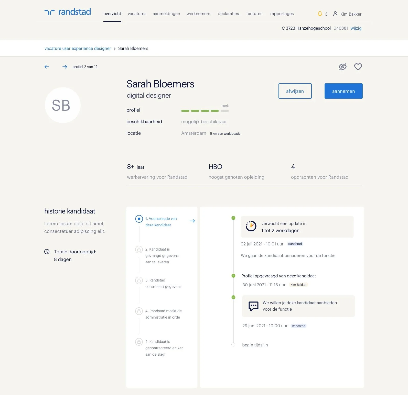 The outcome of this project is a fully transparent 'track & trace' system that eliminates client uncertainty. By designing and integrating a comprehensive status system throughout the portal, from the dashboard to the detail pages, I created a consistent and insightful experience. Clients now have a clear overview of the progress of requests and the status of candidates at all times, which not only significantly improves the user experience but also increases trust in the process.