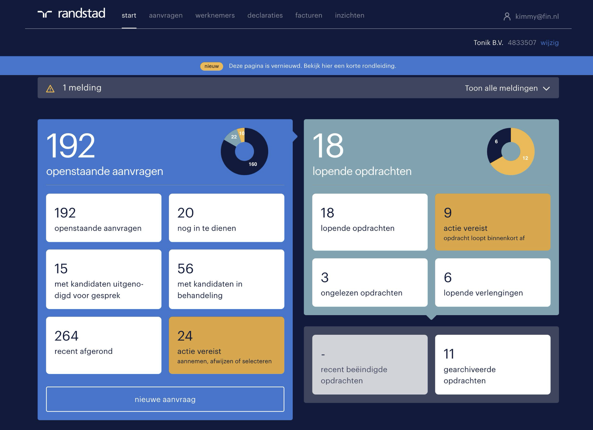 In-depth user research for the 'Online Uitzenden' flow revealed that a lack of insight into the status of requests and candidates was a major pain point. In response, I designed a strategic status system that brings transparency to the entire recruitment process.